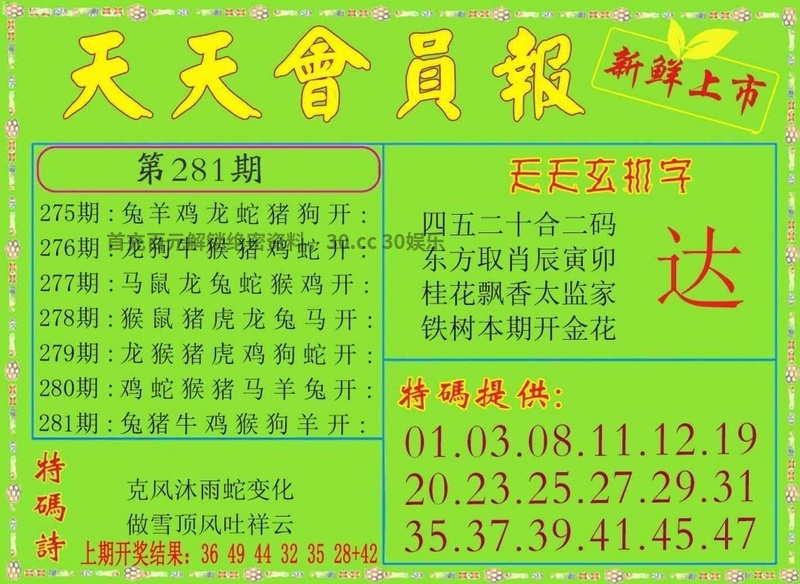 281期🐳胜天单双🐳【双肖】开羊47